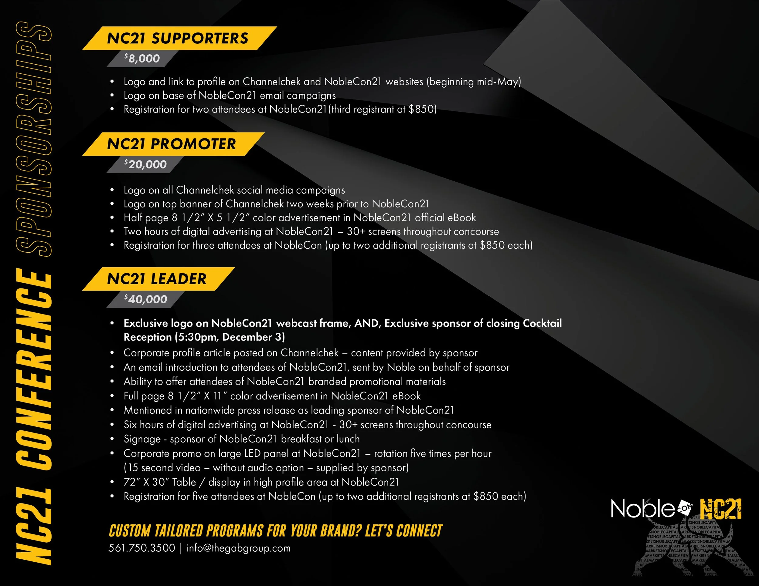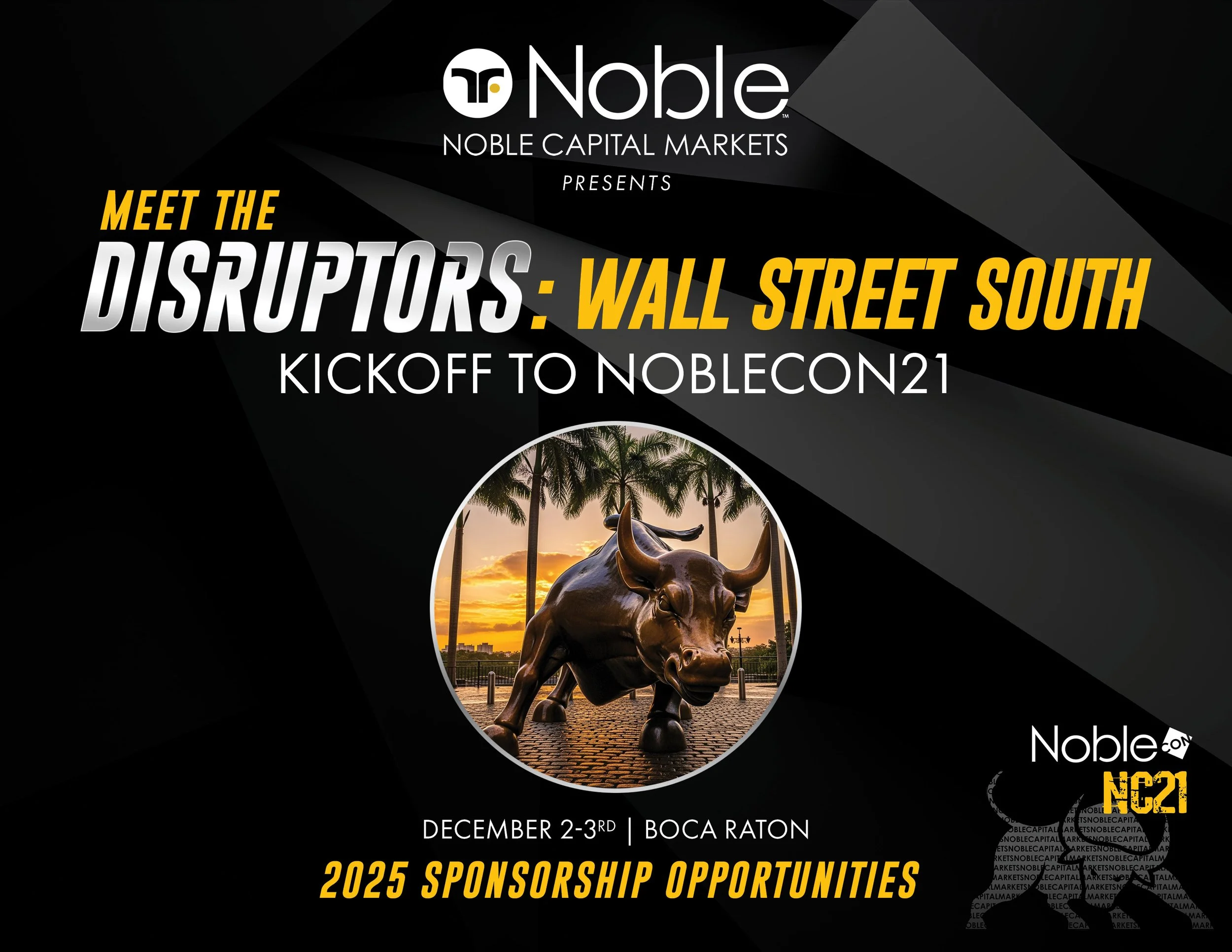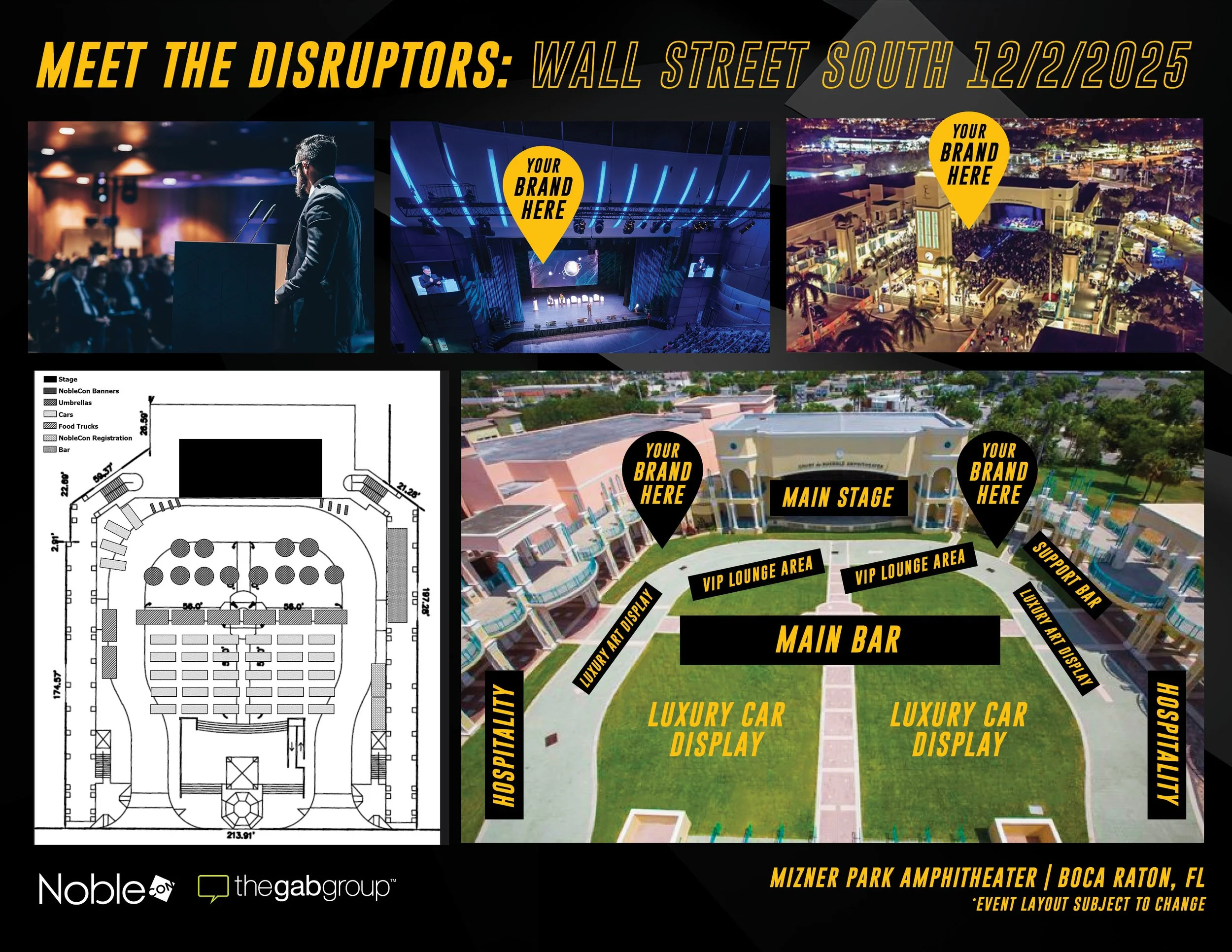 select your experience ATTEND Quick View General Admission $225.00 Add To Cart Added! Quick View C-Suite Lounge Admission $500.00 Add To Cart Added! Quick View Friends of Wall Street South - Company Showcase $7,500.00 Add To Cart Added! Quick View Bespoke Brand Sponsorship - Wall Street South Disruptors $100,000.00 Sold out Sold Out Added! Quick View Inner Circle - Bespoke Member Experience $525.00 Sold out Sold Out Added! Quick View Wall Street South - Curated Gallery Experience - SOLD to Art Connection $17,500.00 Sold out Sold Out Added! Quick View NobleCon21 Sponsorship Opportunities $0.00 Add To Cart Added!